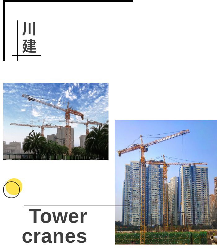 川建M1000塔式起重機起重臂長70米,最大吊重50噸,端部吊重12噸,塔身截面4米;川建C8039塔式起重機起重臂長80米,最大吊重25噸,端部吊重3.9噸,塔身截面2.5米;兩種機型均具有行走式、固定式兩種基礎(chǔ)形式。