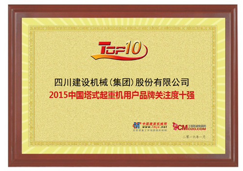近日,中國路面機械網及工程機械電商網發(fā)布“2015中國工程機械用戶品牌關注度排行榜”,四川建設機械(集團)股份有限公司進入“2015中國塔式起重機用戶品牌關注度排行榜”前十強。
