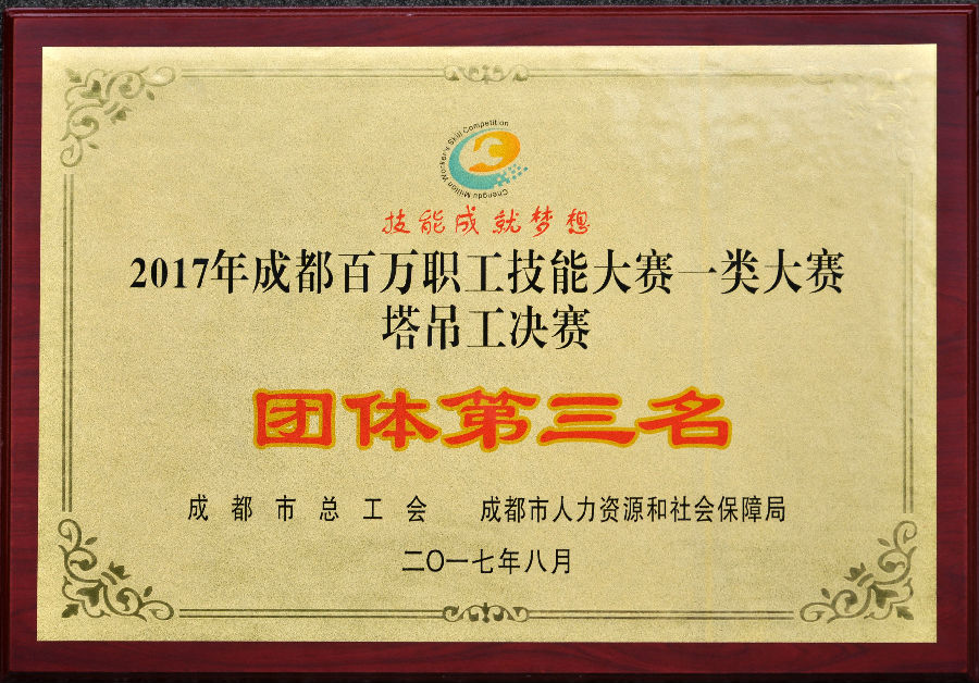 2017年8月14—15日,由成都市總工會(huì)、成都市人社局主辦、成都市總工會(huì)基建工委承辦、中建三局協(xié)辦的“技能成就夢(mèng)想”2017年成都百萬職工技能大賽塔吊工比賽在中建三局中科院成都分院遷建項(xiàng)目成功舉行。來自成都市塔機(jī)制造廠家、建筑施工企業(yè)及設(shè)備租賃公司的17支代表隊(duì)參加了比賽。成都市總工會(huì)黨組書記張余松、成都市人社局副局長李軍等領(lǐng)導(dǎo)親臨現(xiàn)場(chǎng)觀摩、指導(dǎo),并為獲獎(jiǎng)代表隊(duì)及個(gè)人頒發(fā)了獲獎(jiǎng)證書。