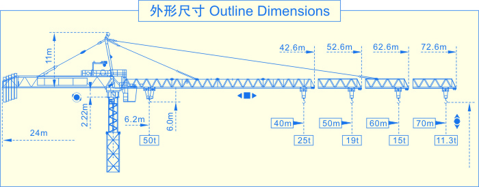 SCM-M900(50t)塔式起重機(jī),是我公司吸收國(guó)外塔機(jī)技術(shù),自行設(shè)計(jì)制造的大型上回轉(zhuǎn)自升式塔式起重機(jī)。該機(jī)型設(shè)計(jì)新穎,起升、回轉(zhuǎn)、變幅、行走、頂升等機(jī)構(gòu)均采用國(guó)外技術(shù),性能先進(jìn)可靠。 該機(jī)具有軌道行走式、固定附著式,多種使用類(lèi)型。變幅有單小車(chē)和雙小車(chē)兩種,單小車(chē)情況下最大起重量50t,端部吊重10t;雙小車(chē)情況下最大起重量50t,端部吊重11.3t。