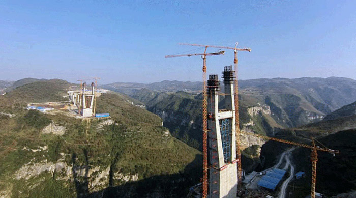 項(xiàng)目地點(diǎn):六廣河特大橋是息黔高速公路最為重要,同時(shí)也是施工難度最大的控制性工程,兩側(cè)橋墩高度均為242米,每個(gè)橋墩的起重機(jī)械配置均為川建生產(chǎn)的兩臺(tái)C7030塔機(jī)和兩臺(tái)SC200/200WPZ中速變頻施工梯。